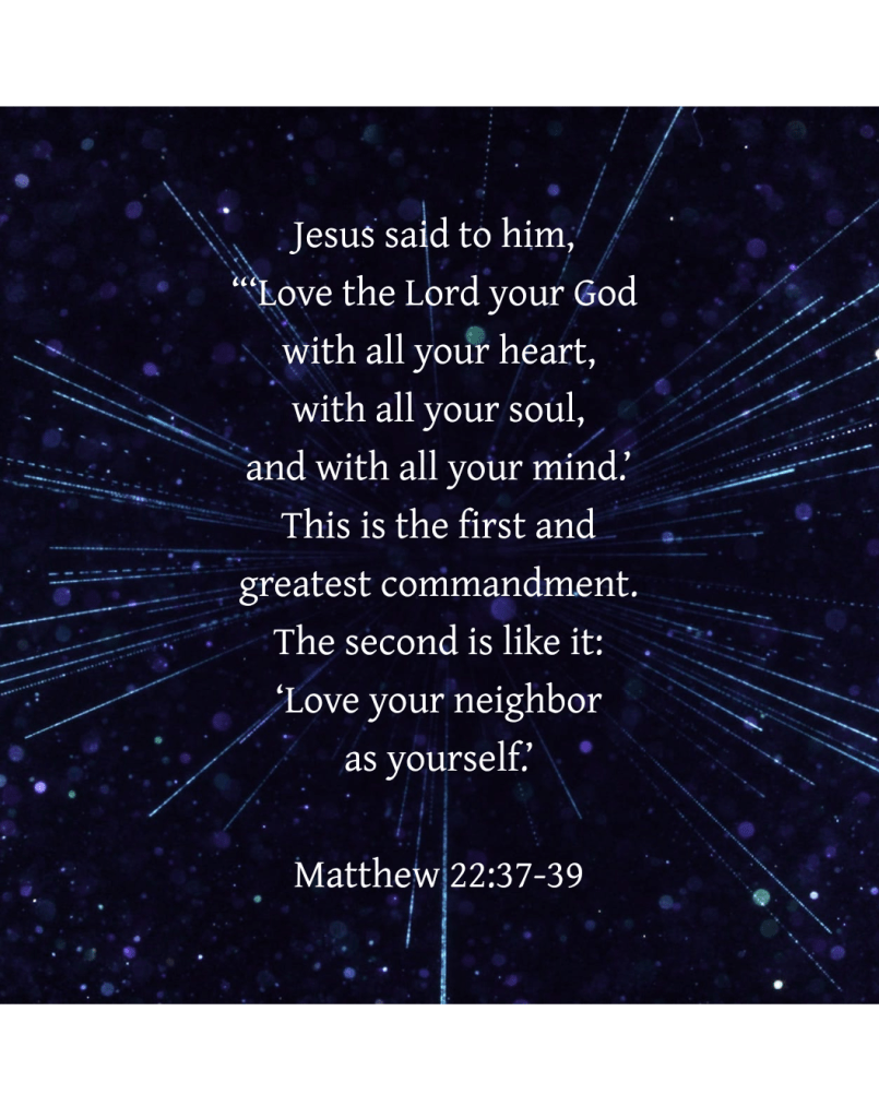 Because of God’s great love for us, we seek to obey the Great Commandment: to love God with all that we are and to love those around us as well.